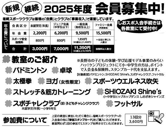 | 区分 | 入会金 | スポーツ安全保険料 |